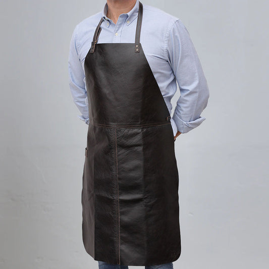 Förkläde i läder med knytband och justerbart halsband, Slitstarkt skinnförkläde, Handtillverkat i Sverige