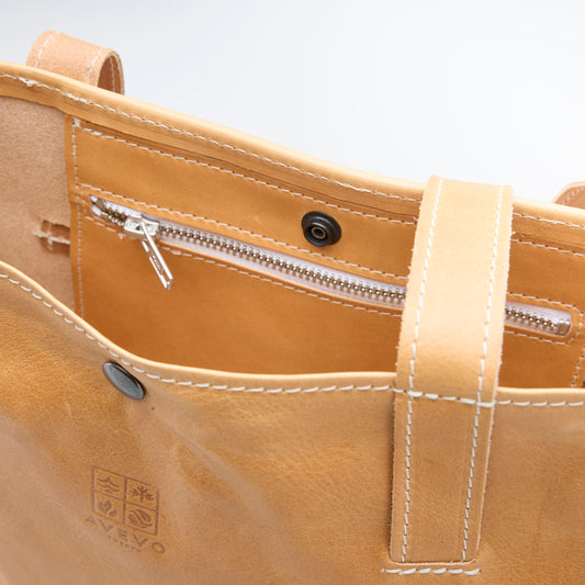 Tote bag i äkta skinn, handväska med långa handtag, handtillverkad axelväska i Sverige
